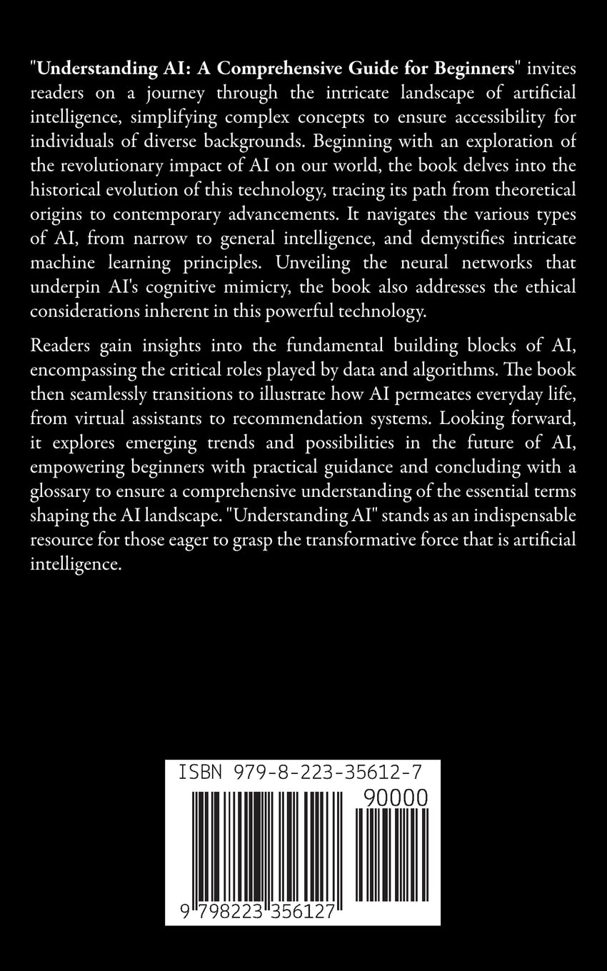 “Understanding AI: A Comprehensive Guide for Beginners” invites readers on a journey through the intricate landscape of artificial intelligence, simplifying complex concepts to ensure accessibility for individuals of diverse backgrounds. Beginning with an exploration of the revolutionary impact of AI on our world, the book delves into the historical evolution of this technology, tracing its path from theoretical origins to contemporary advancements. It navigates the various types of AI, from narrow to general intelligence, and demystifies intricate machine learning principles. Unveiling the neural networks that underpin AI’s cognitive mimicry, the book also addresses the ethical considerations inherent in this powerful technology.