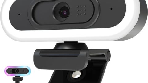 saylas 2K 50FPS Webcam, Streaming Camera with Fill RGB Lights, Autofocus, Dual Noise-Cancelling Microphones, Privacy Cover and Tripod for Computer, PC, Zoom, Skype, Teams, Laptop