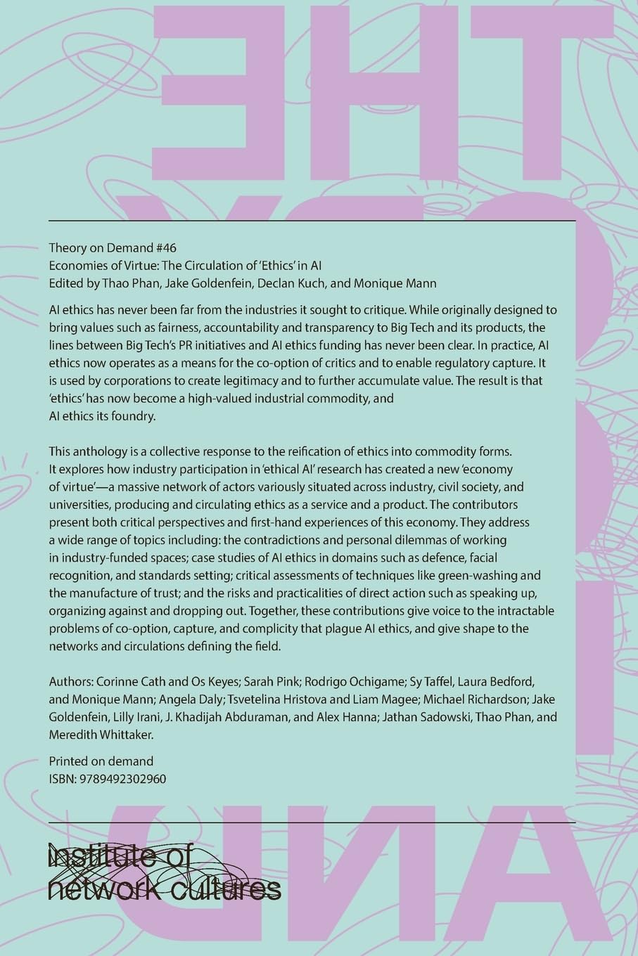 AI ethics has never been far from the industries it sought to critique. While originally designed to bring values such as fairness, accountability and transparency to Big Tech and its products, the lines between Big Tech’s PR initiatives and AI ethics funding has never been clear. In practice, AI ethics now operates as a means for the co-option of critics and to enable regulatory capture. It is used by corporations to create legitimacy and to further accumulate value. The result is that ‘ethics’ has now become a high-valued industrial commodity, and AI ethics its foundry. This anthology is a collective response to the reification of ethics into commodity forms. It explores how industry participation in ‘ethical AI’ research has created a new ‘economy of virtue’—a massive network of actors variously situated across industry, civil society, and universities, producing and circulating ethics as a service and a product. The contributors present both critical perspectives and first-hand experiences of this economy. They address a wide range of topics including: the contradictions and personal dilemmas of working in industry-funded spaces; case studies of AI ethics in domains such as defence, facial recognition, and standards setting; critical assessments of techniques like green-washing and the manufacture of trust; and the risks and practicalities of direct action such as speaking up, organizing against and dropping out. Together, these contributions give voice to the intractable problems of co-option, capture, and complicity that plague AI ethics, and give shape to the networks and circulations defining the field.