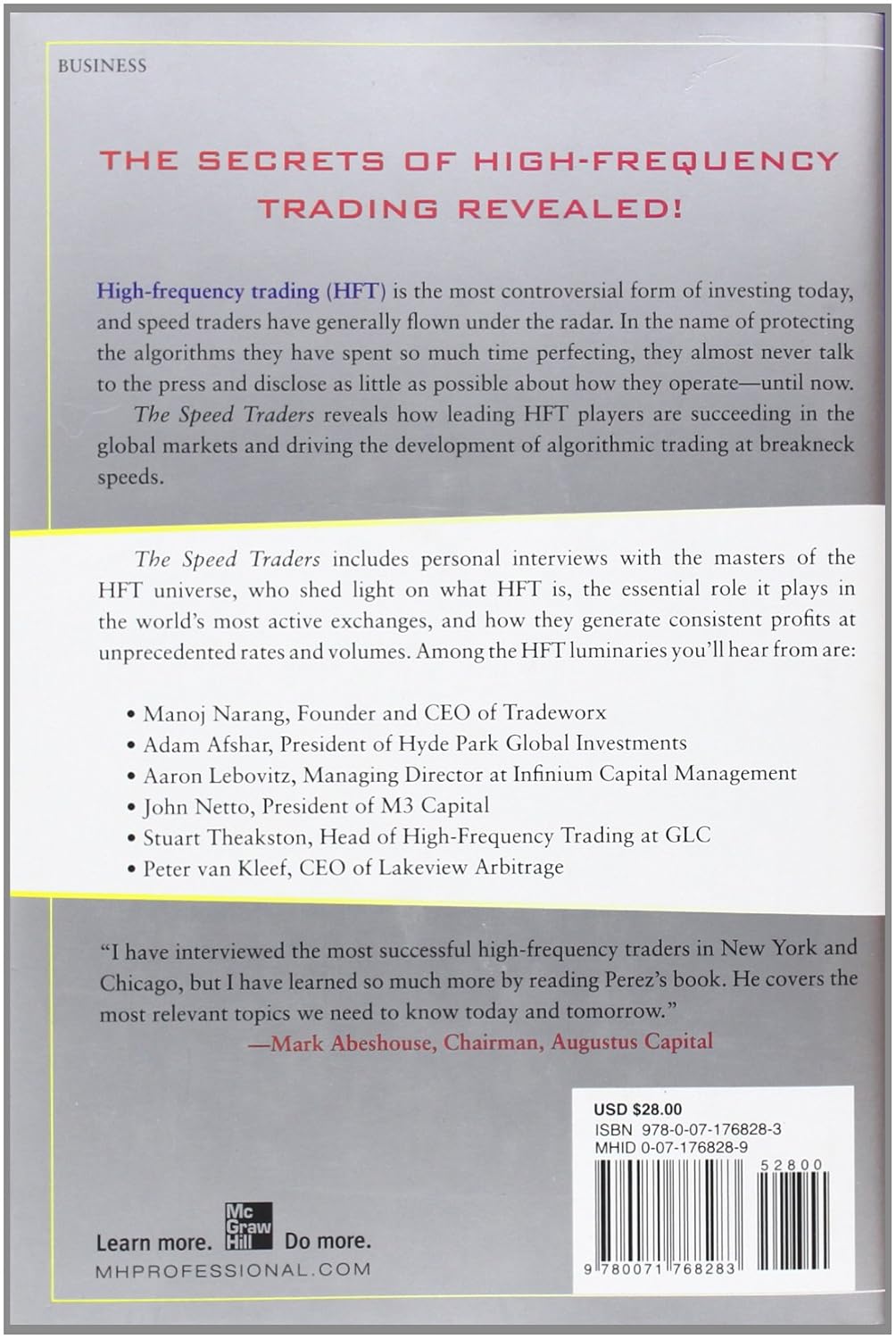 In The Speed Traders, Edgar Perez, founder of the prestigious business networking community Golden Networking, opens the door to the secretive world of high-frequency trading (HFT). Inside, prominent figures of HFT drop their guard and speak with unprecedented candidness about their trade.